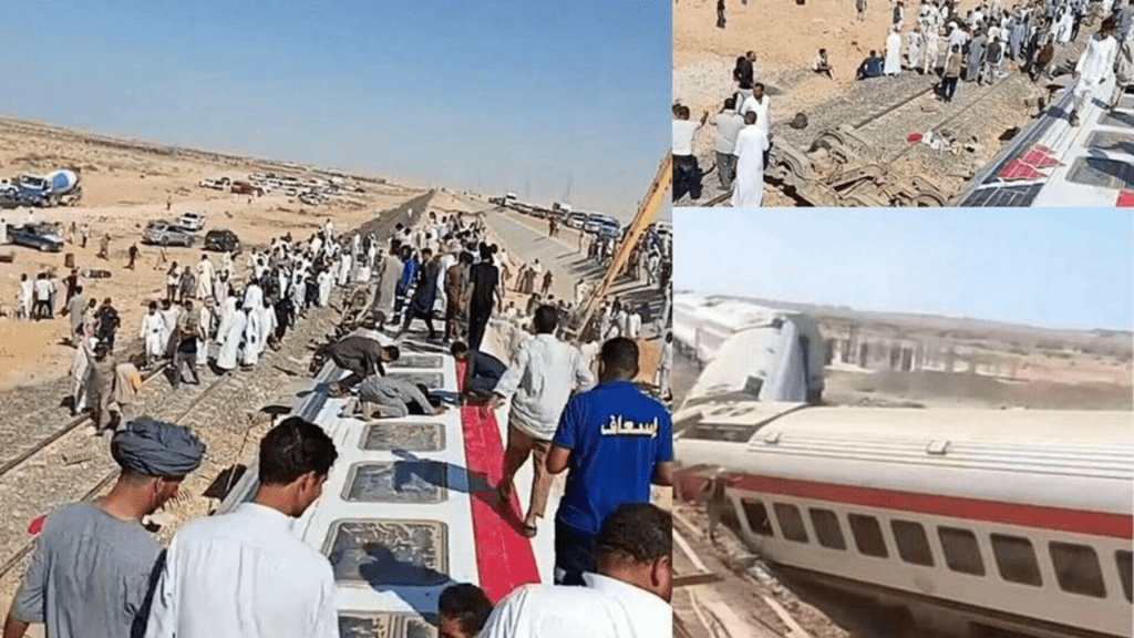 Iniţial, portalul de ştiri egiptean al-Youm al-Sabaa a relatat că incidentul a avut loc în urma unei tasări, ceea ce a determinat o suspendare a circulaţiei feroviare.