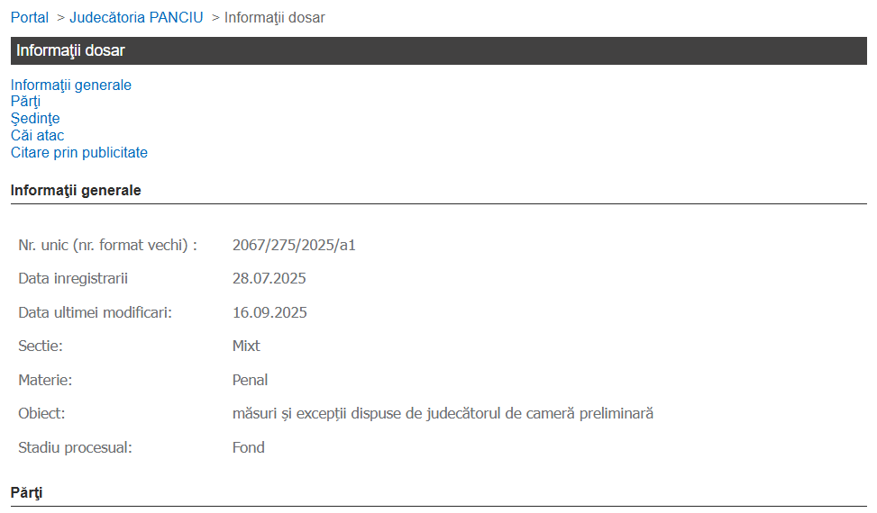 Dosarul a fost trimis spre soluționare Judecătoriei Panciu, prima ședință fiind programată pentru 26 septembrie 2025, ora 11:00.
